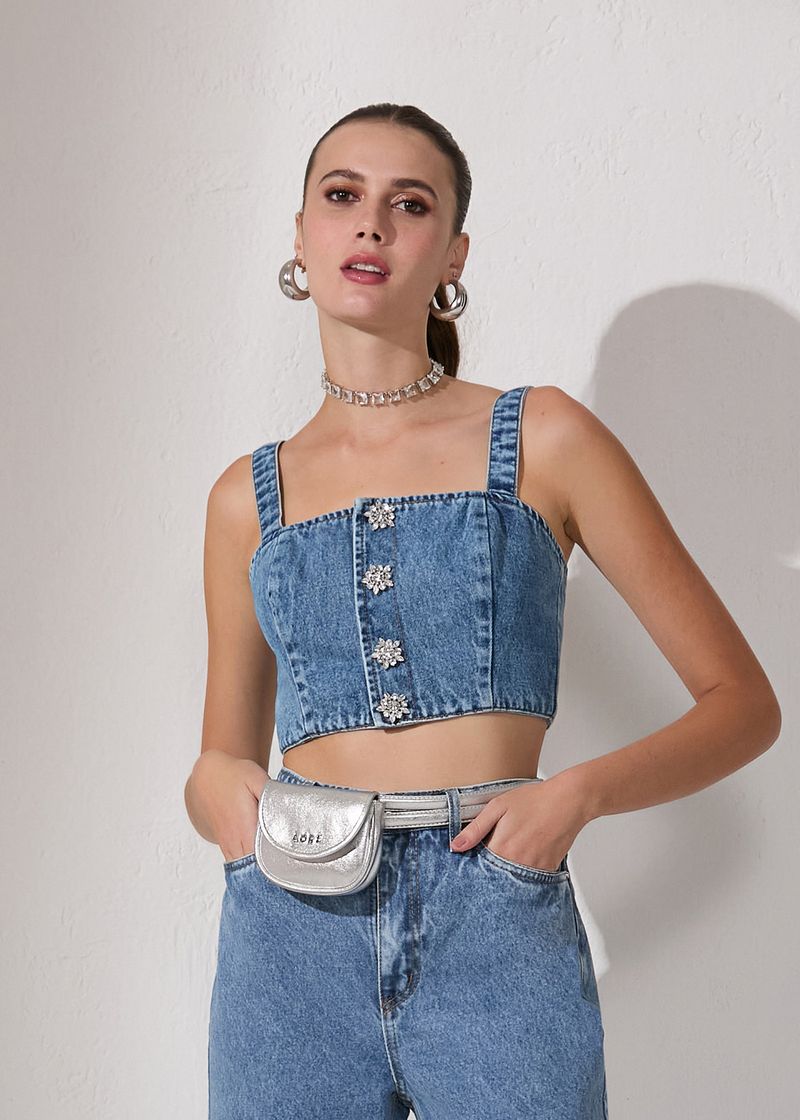 SaleJeansBlusasTop Cropped Jeans Stripped - Jeans