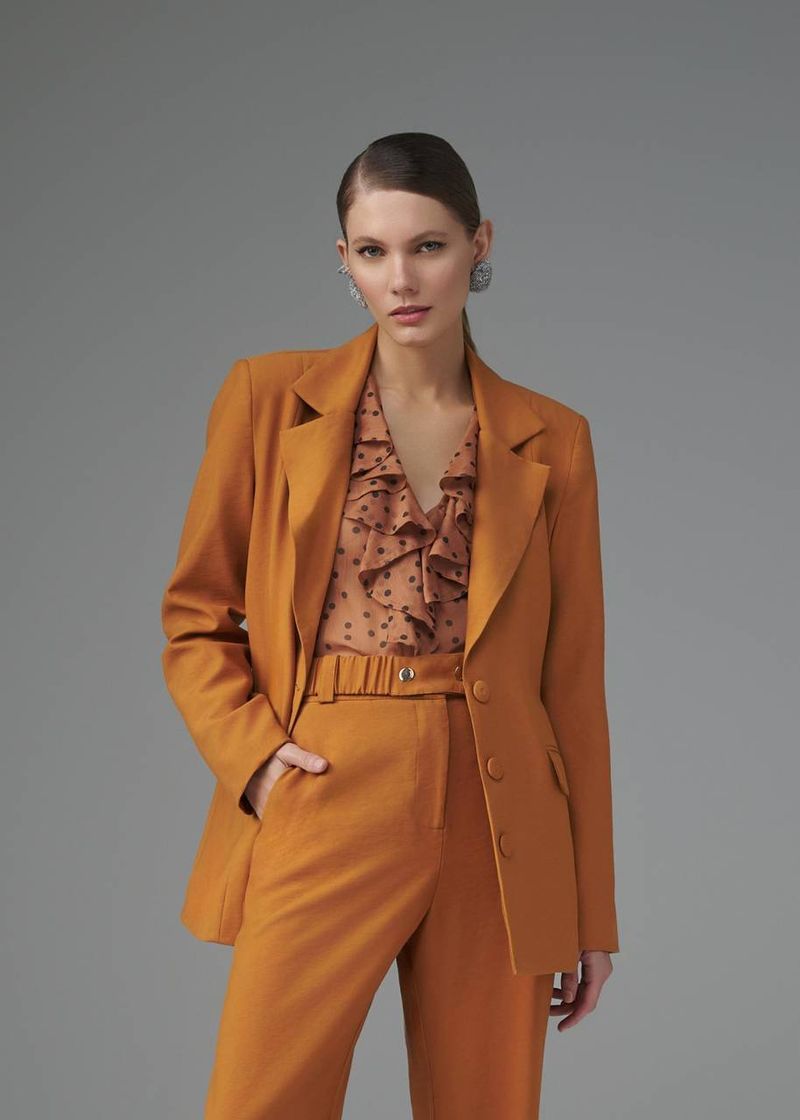 A alfaiataria refinada se destaca neste blazer estruturado, que alia elegância e versatilidade. Os botões forrados frontais adicionam um acabamento sofisticado, enquanto os recortes nas costas e nas mangas conferem um ajuste preciso à silhueta. Os bolsos embutidos com tampas garantem funcionalidade sem comprometer a sofisticação do modelo. Na tonalidade camel, a peça exala sofisticação e neutralidade, sendo ideal para composições atemporais e elegantes.