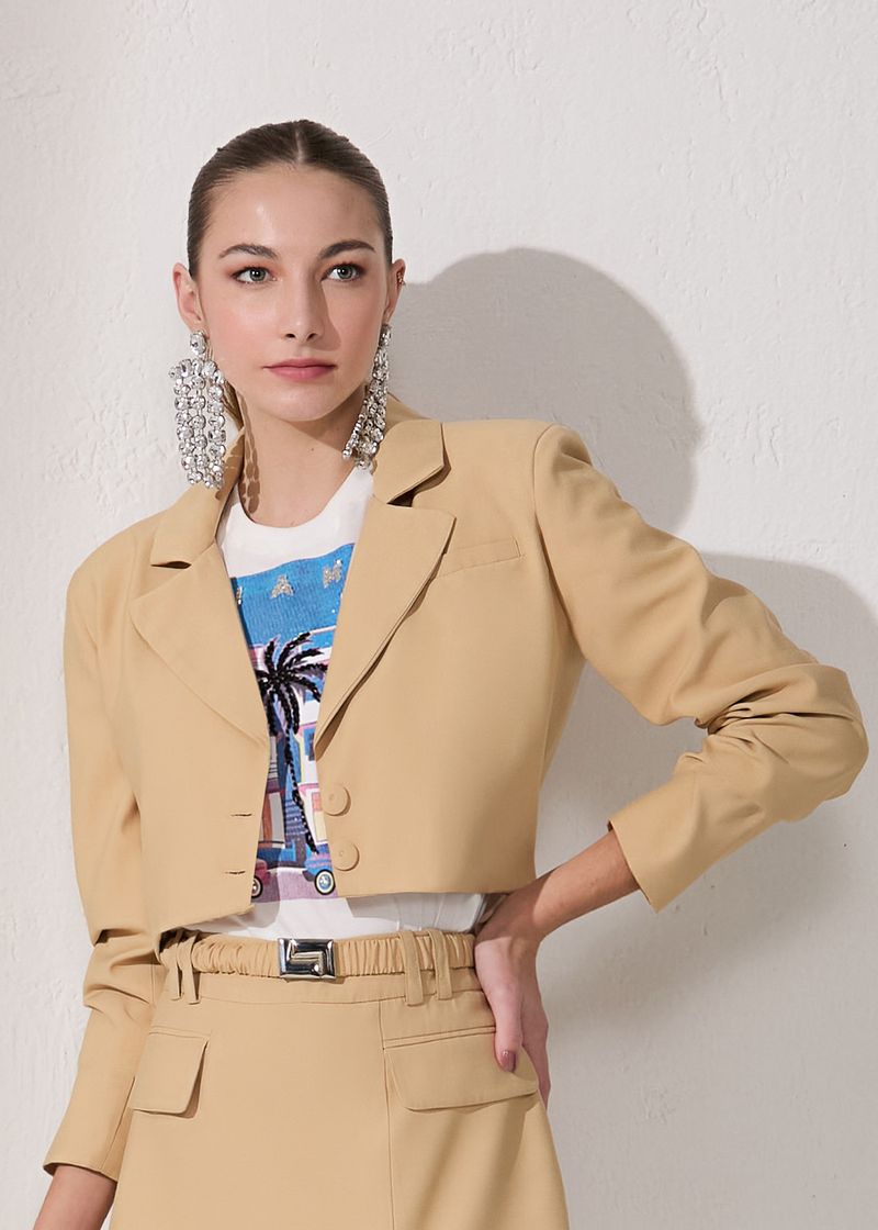 Blazer Cropped Alfaiataria Visco - Capuccino
