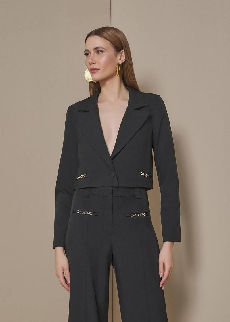 RoupasNew InAKROCasacos e JaquetasBlazer Feminino Curto Com Bolsos - Preto