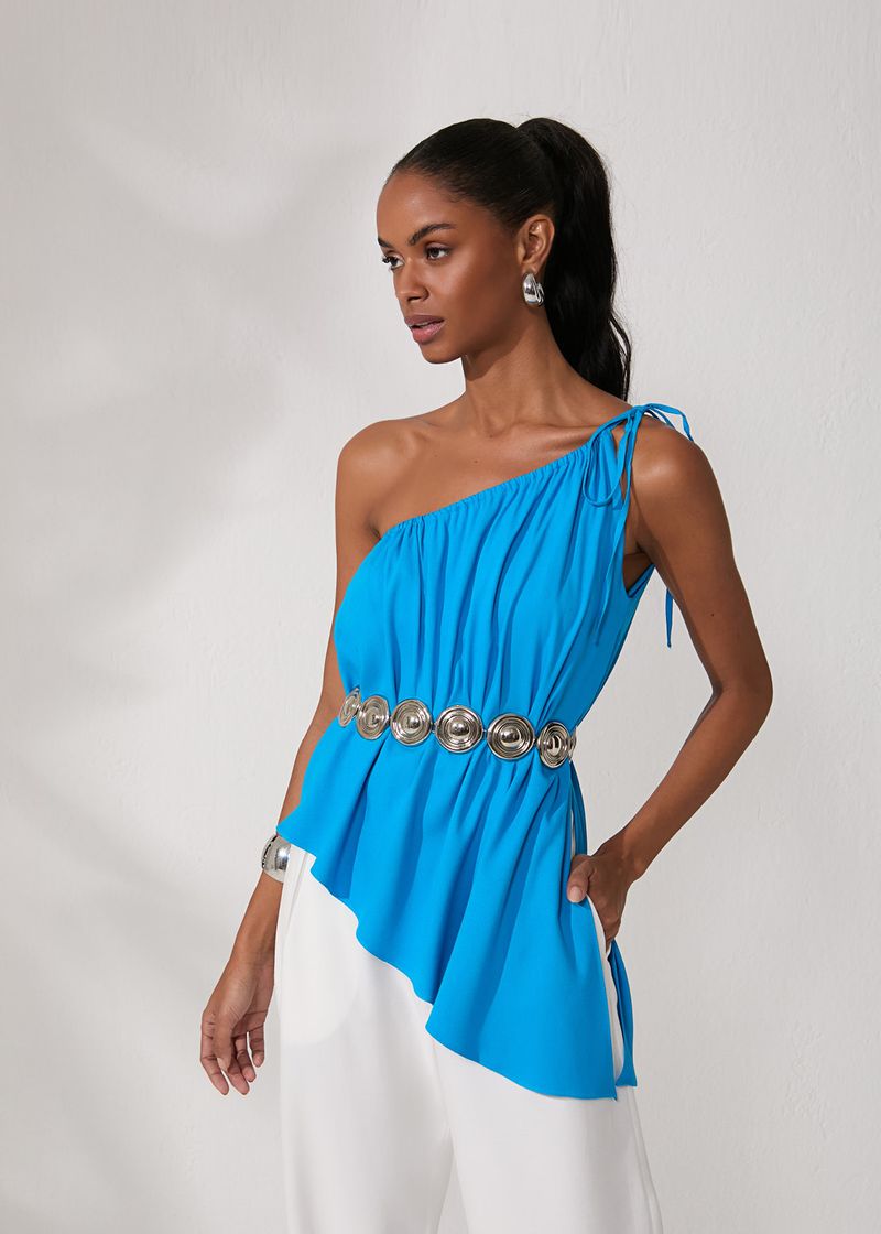 Blusa Assimétrica Visco Texture - Azul