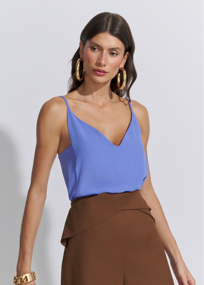 A cor denim traz uma releitura atual do clássico top de alças finas. Feita em crepe de textura leve, garante conforto e caimento fluido ao vestir. O decote V alonga a silhueta e adiciona feminilidade ao look, enquanto a tonalidade azul denim oferece sofisticação com leveza. Ideal para combinar com calças em tons terrosos, peças em linho ou até composições monocromáticas. Perfeita para looks casuais com um toque elegante, ela transita bem entre ambientes descontraídos e produções mais elaboradas com salto e acessórios.