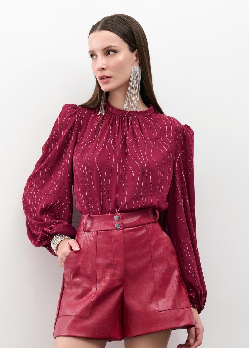 Blusa De Chiffon Com Mangas Bufantes - Cherry