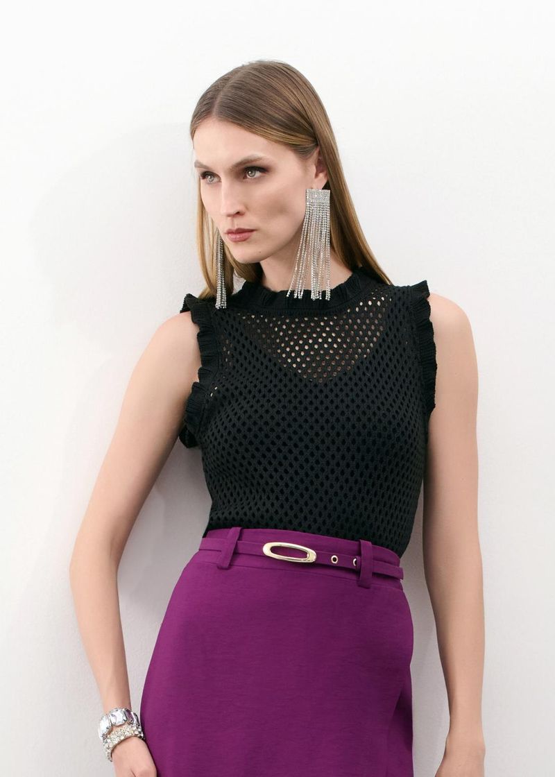 Blusa De Tricot Frufru - Preto