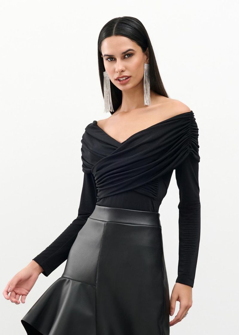 Blusa Decote Ombro A Ombro Jersey Gloss - Preto