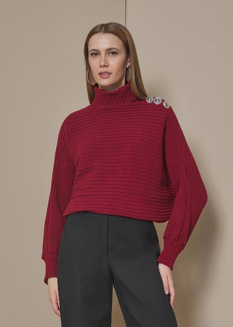 A blusa cacharrel em Bordo combina elegância discreta com um toque de modernidade. A trama canelada valoriza a silhueta com conforto, enquanto os botões aplicados adicionam um detalhe sofisticado que atualiza o clássico. O tom intenso e sofisticado é perfeito para produções de inverno, funcionando bem com alfaiataria, couro ou saias estruturadas. Uma peça versátil para elevar o dia a dia com charme.