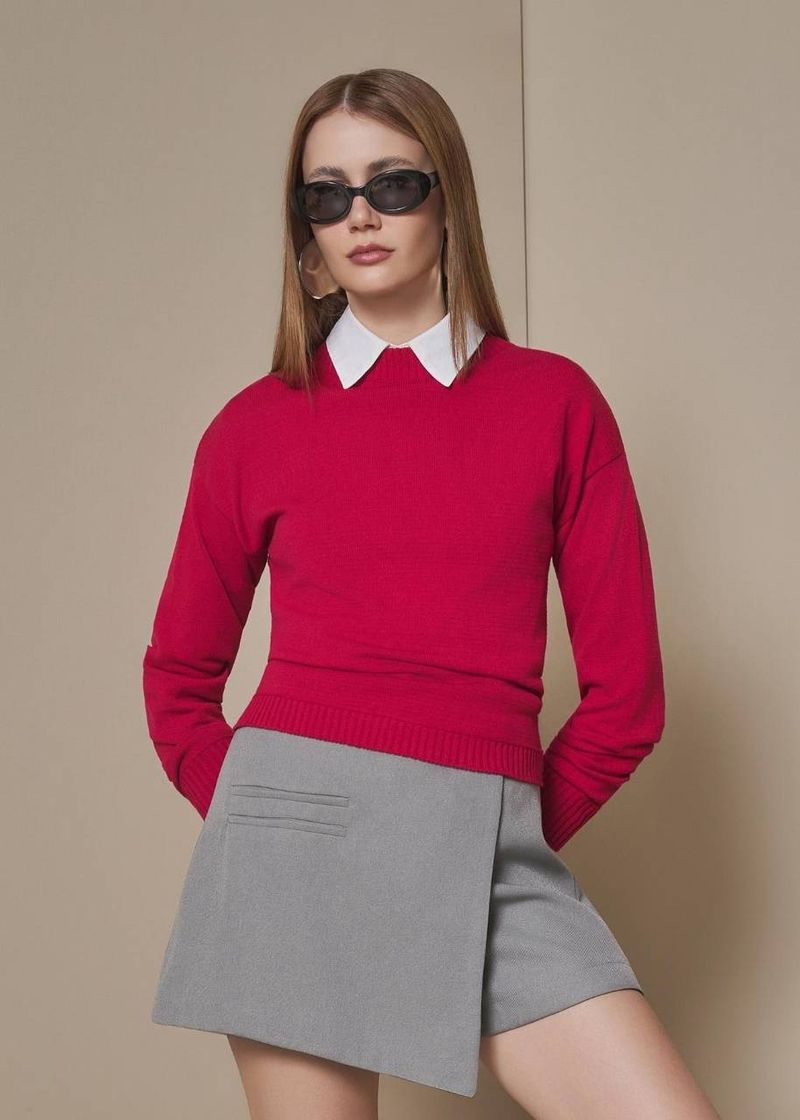 RoupasNew InAKROBlusasTricotCamisasBlusa Feminina De Manga Longa Tricot - Vermelho