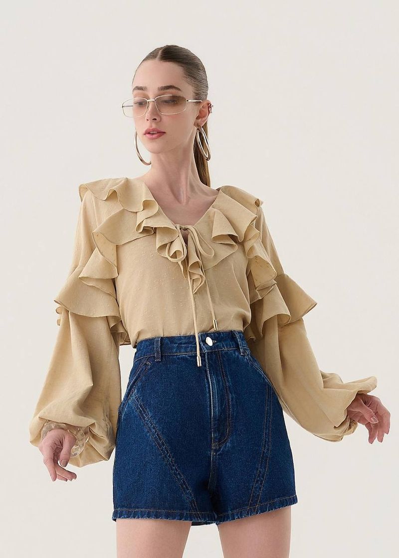 Blusa Manga Bufante Com Babados - Areia