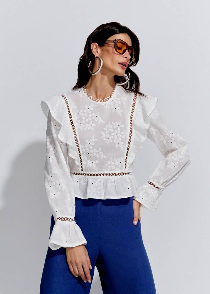 A versão off white da Blusa Romantic Bordado Garden traduz elegância e pureza em uma peça só. Seu tom neutro é perfeito para looks minimalistas com um toque romântico. Os detalhes em bordado floral aparecem com mais destaque sobre o fundo claro, enquanto os babados estruturados trazem leveza sem perder a sofisticação. A aplicação de rendas e a modelagem peplum criam uma silhueta feminina que valoriza a cintura. Use com peças claras para um visual monocromático moderno ou combine com jeans e acessórios coloridos para contrastes sutis e elegantes.