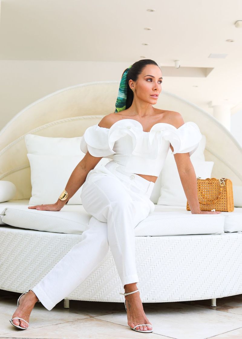 A versão off-white é sinônimo de versatilidade sofisticada. Os babados trazem movimento e feminilidade, enquanto o recorte estruturado com acabamento em zíper metálico garante modernidade. Use com calças jeans para produções casuais cheias de estilo ou combine com peças de alfaiataria clara para ocasiões mais elegantes. Um item indispensável no closet.