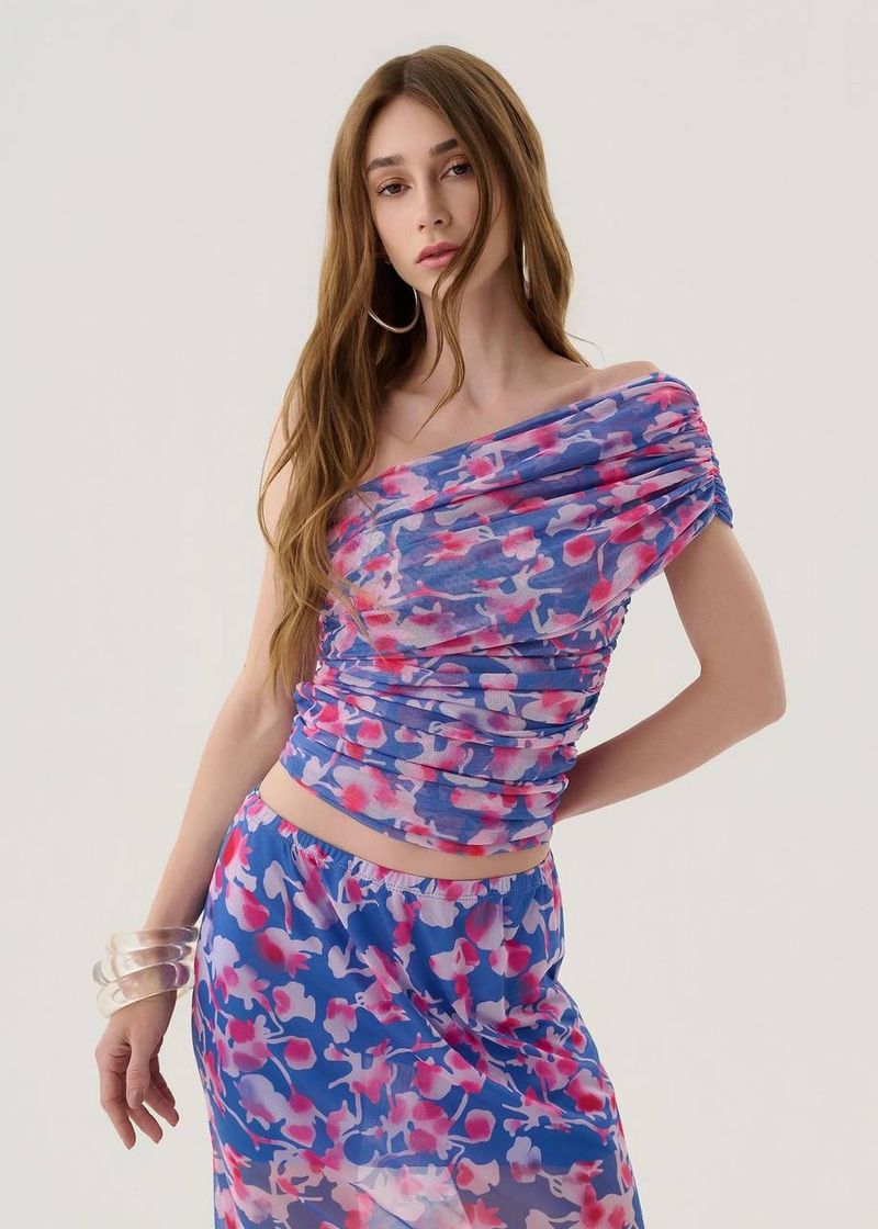 Delicada e contemporânea, a versão lilás dessa blusa um ombro só revela feminilidade em cada detalhe. O franzido bem posicionado no ombro e nas laterais realça a forma do corpo de maneira elegante e discreta. Perfeita para jantares românticos, eventos ao ar livre ou composições leves com calças claras. Combine com sandálias de tiras finas para reforçar a sofisticação.