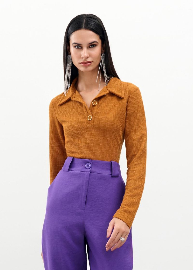 Blusa Polo Tricot Luxemburgo - Camel