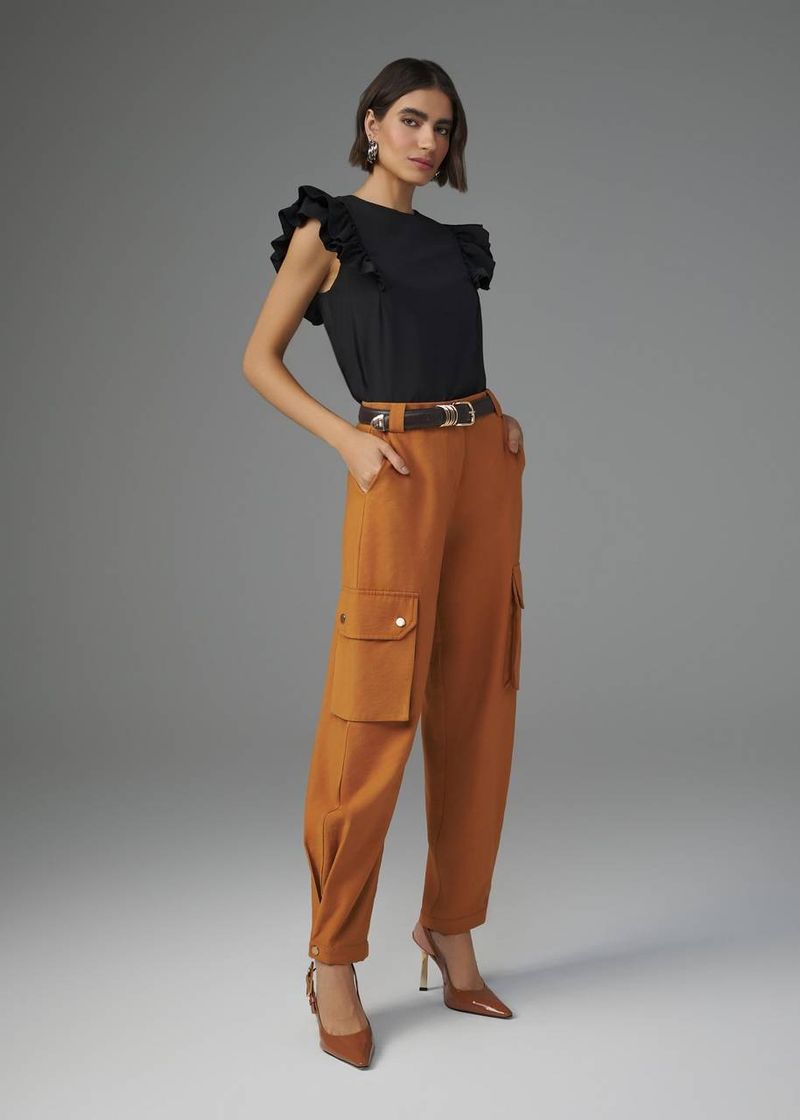 SaleEm AltaCalçasAtemporaisCalça Cargo Botões Alfaiataria Visco - Camel