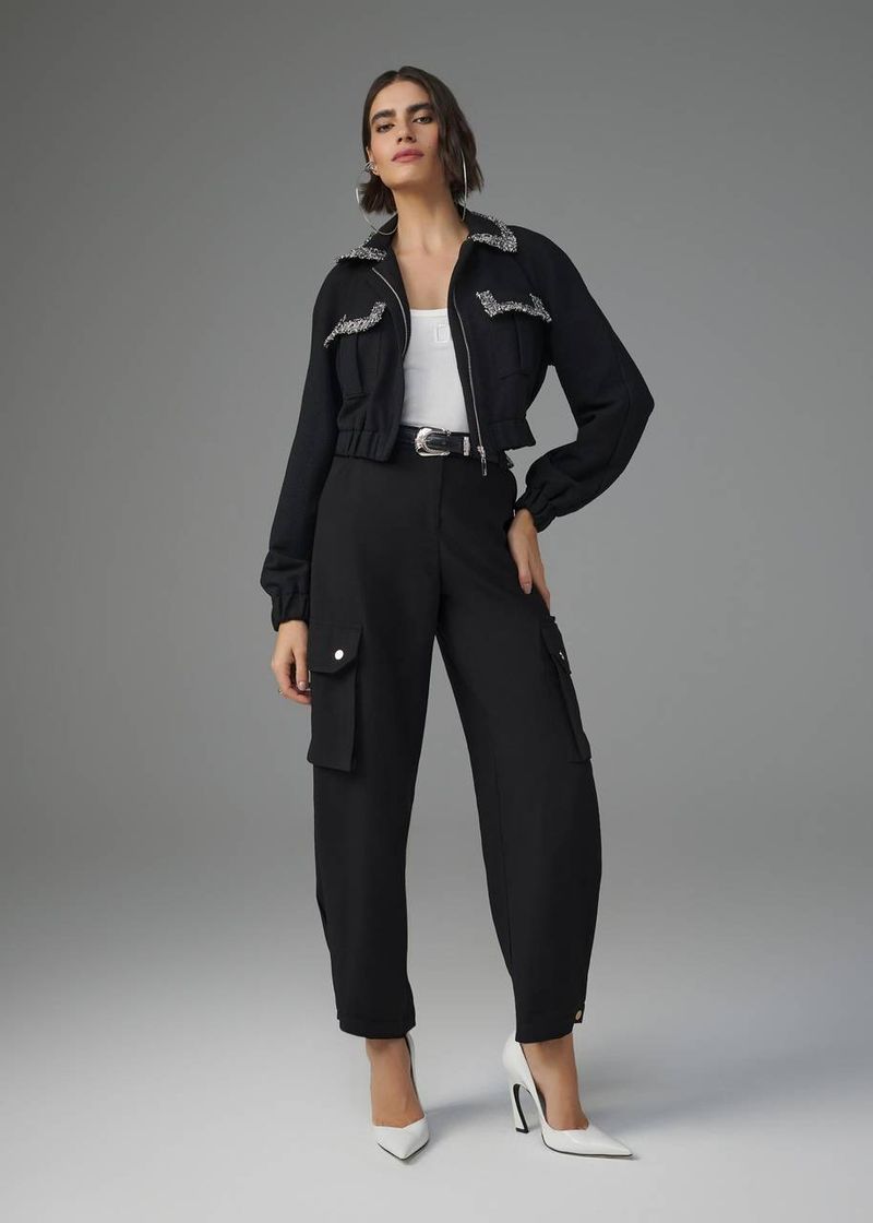 SaleEm AltaCalçasAtemporaisCalça Cargo Botões Alfaiataria Visco - Preto
