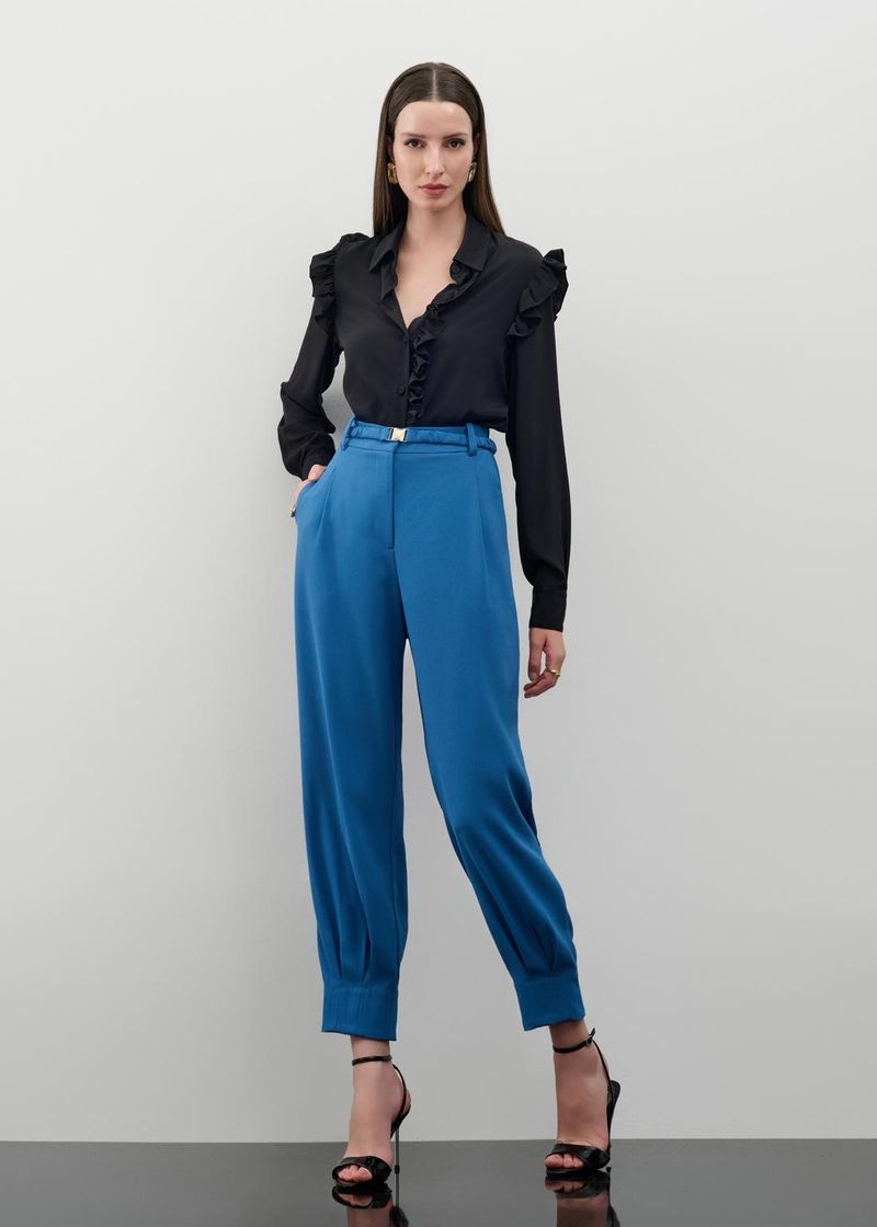Calça Cenoura Alfaiataria Com Cinto Infinity - Denim