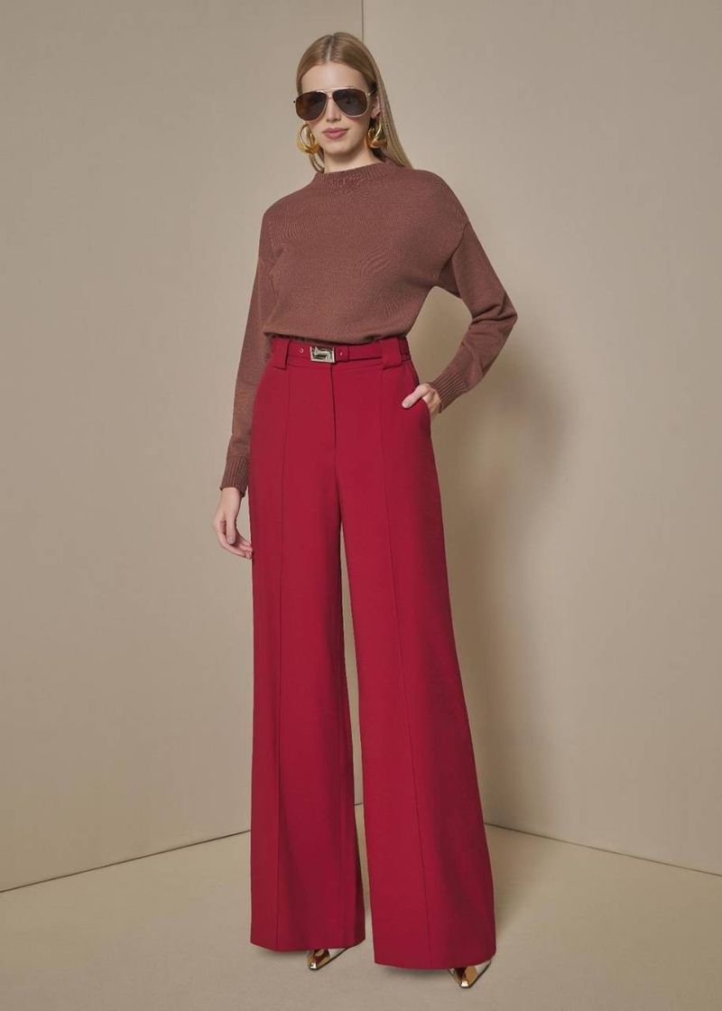 A calça wide leg bordô é uma peça que une elegância e personalidade. O tom sofisticado valoriza a modelagem fluida, enquanto os colchetes e o botão frontal trazem acabamento refinado. Ideal para composições de destaque, seja com camisas leves ou bodies estruturados.