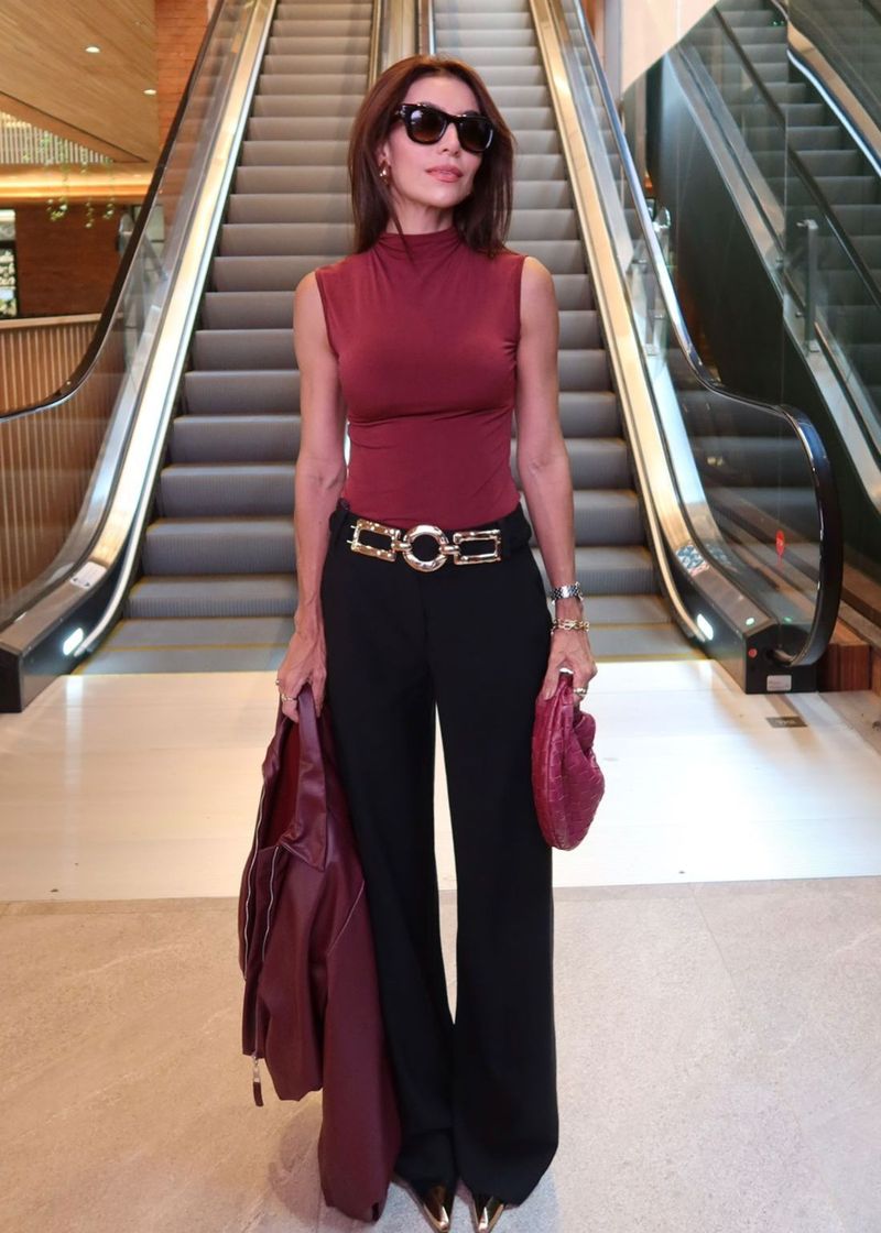 RoupasNew InAKROCalçasCalça Feminina Wide Leg Em Alfaiataria Com Cinto - Preto