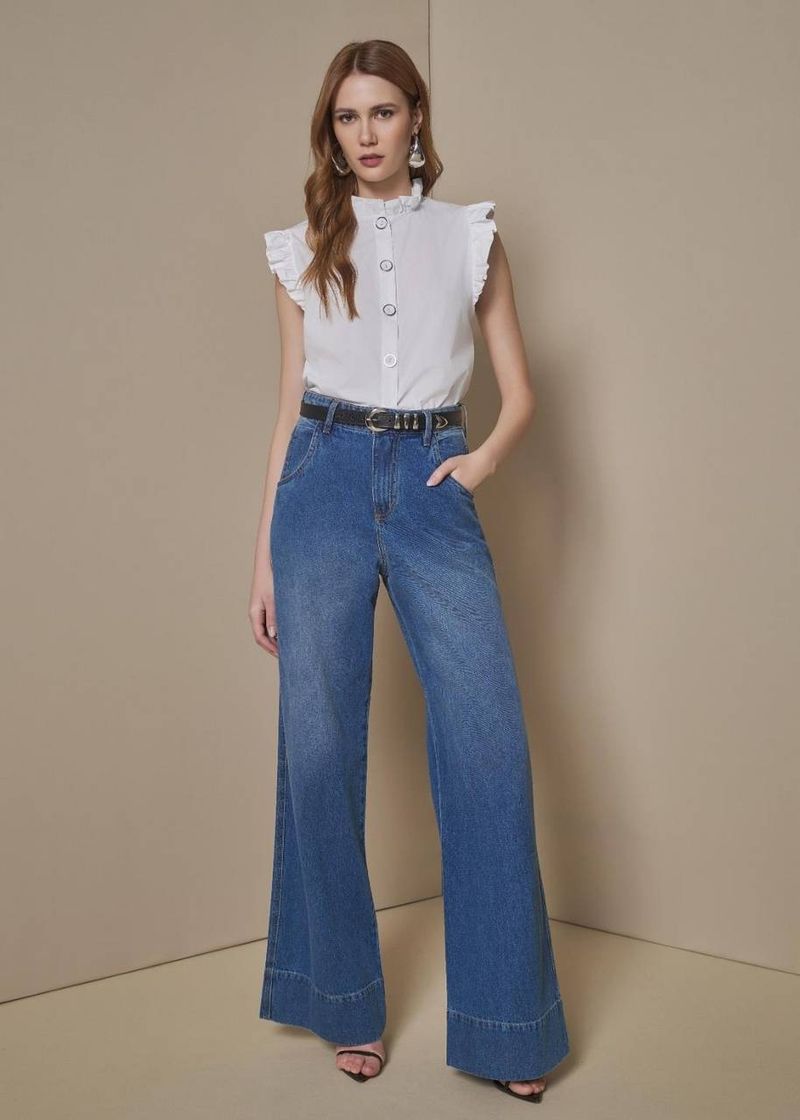 Na versão jeans tradicional, a pantalona ganha um ar leve e atemporal. A modelagem ampla e a barra larga proporcionam movimento e caimento impecável, enquanto os bolsos funcionais deixam a peça prática para o dia a dia. Um clássico contemporâneo que combina com tudo — da t-shirt básica ao blazer estruturado — e acompanha você em qualquer ocasião com estilo.