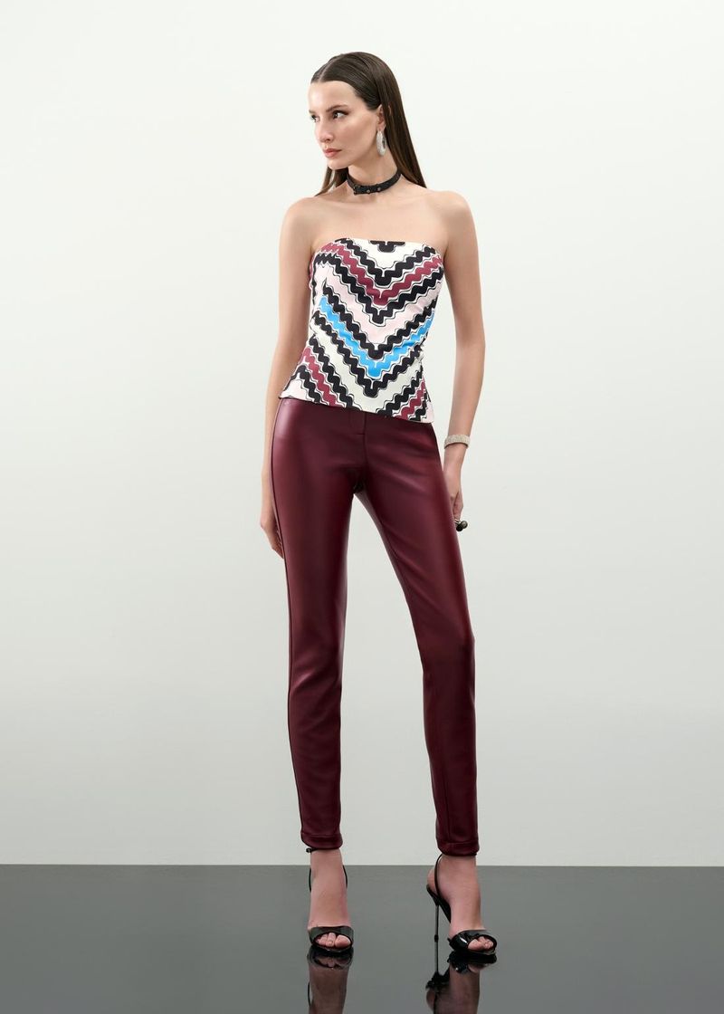 Calça Skinny De Malha Block - Cherry