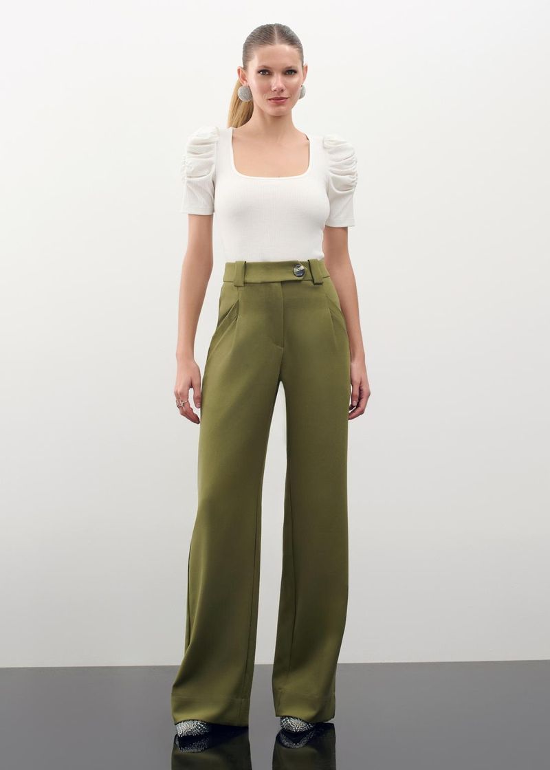 SaleCalçasCalça Wide Leg Alfaiataria Business - Oliva
