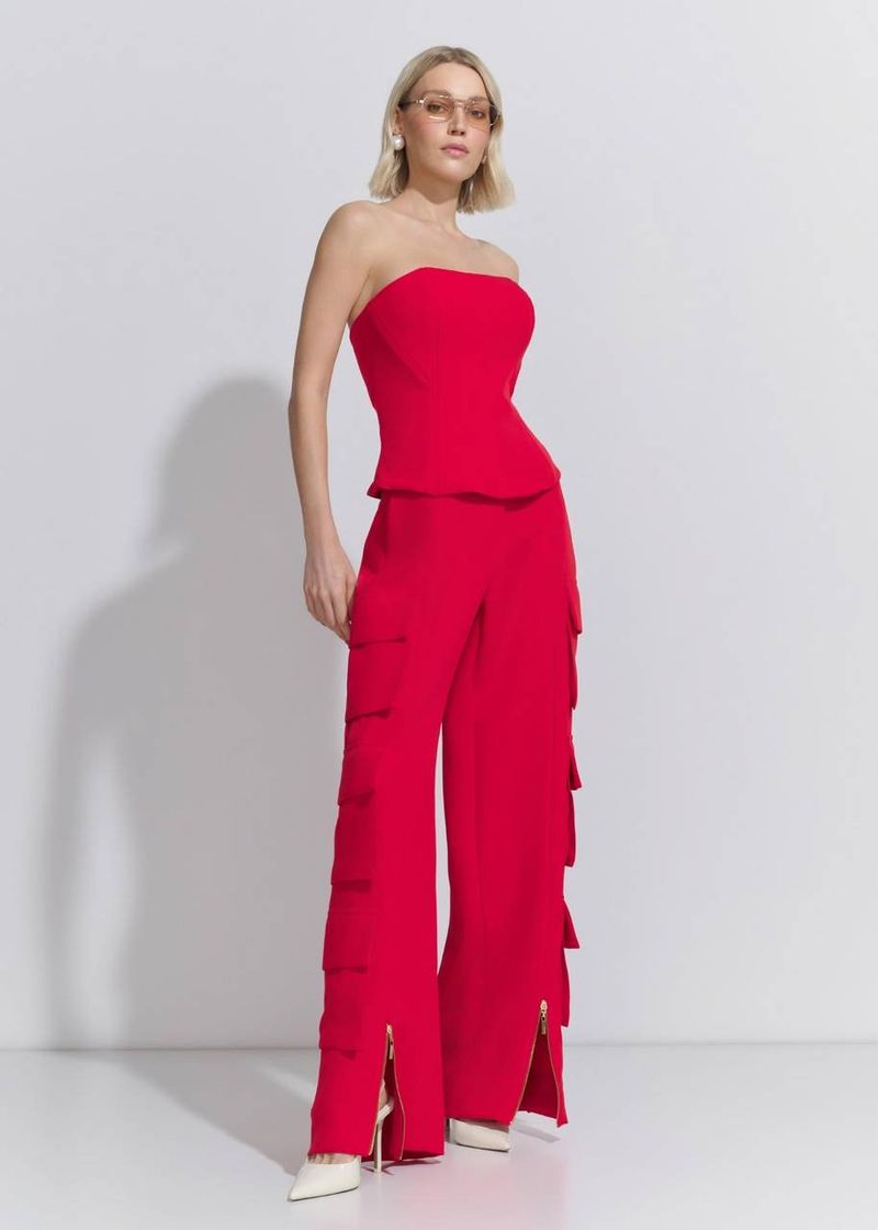 Calça Wide Leg Cargo Alfaiataria Dense - Vermelho