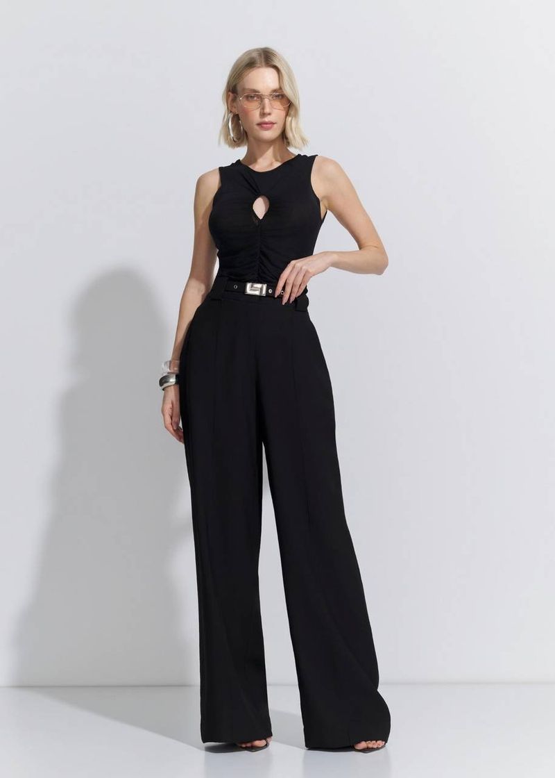 Calça Wide Leg Cinto Alfaiataria Colors - Preto