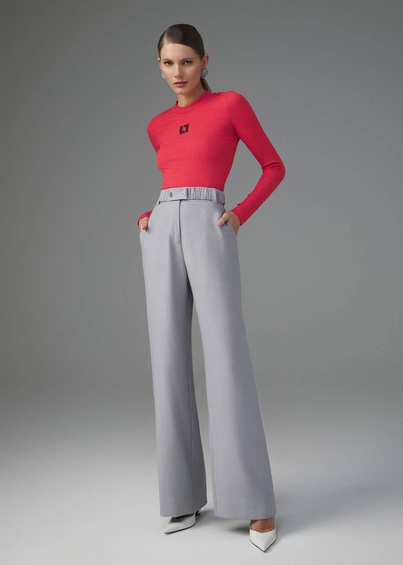 Calça Wide Leg Cinto Alfaiataria Visco - Cinza