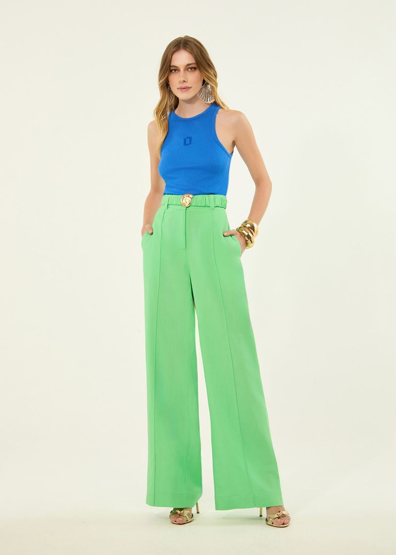 Calça Wide Leg Com Cinto Viscose Linen Greco - Summer Green