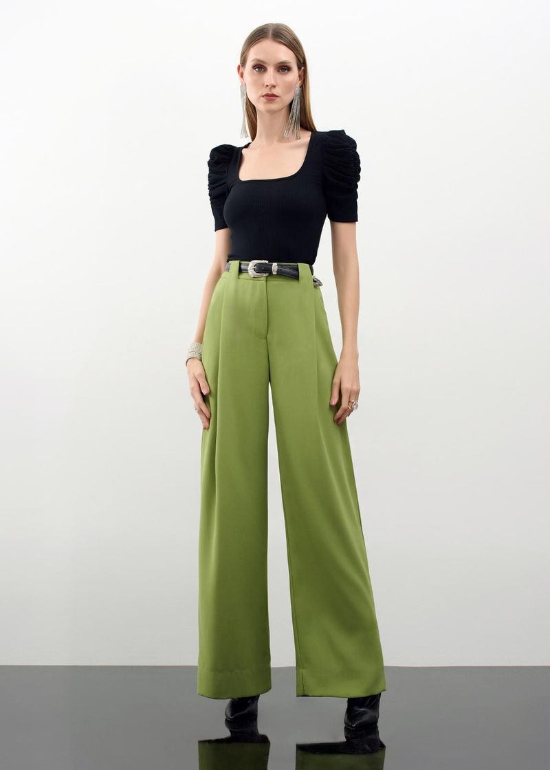 Calça Wide Leg Crepe Satin - Matcha