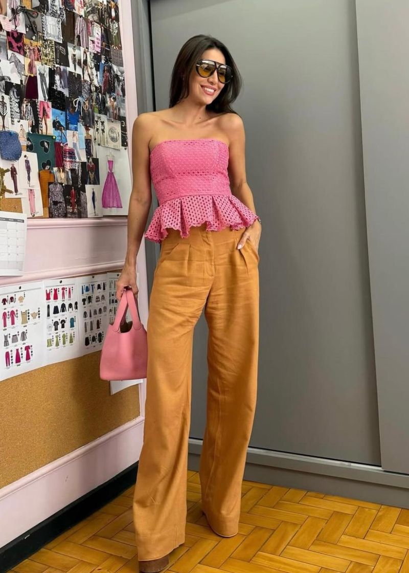 Calça Wide Leg Em Linho Com Cinto - Camel