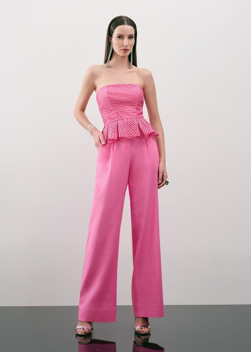 Calça Wide Leg Em Linho Com Cinto - Chicletes
