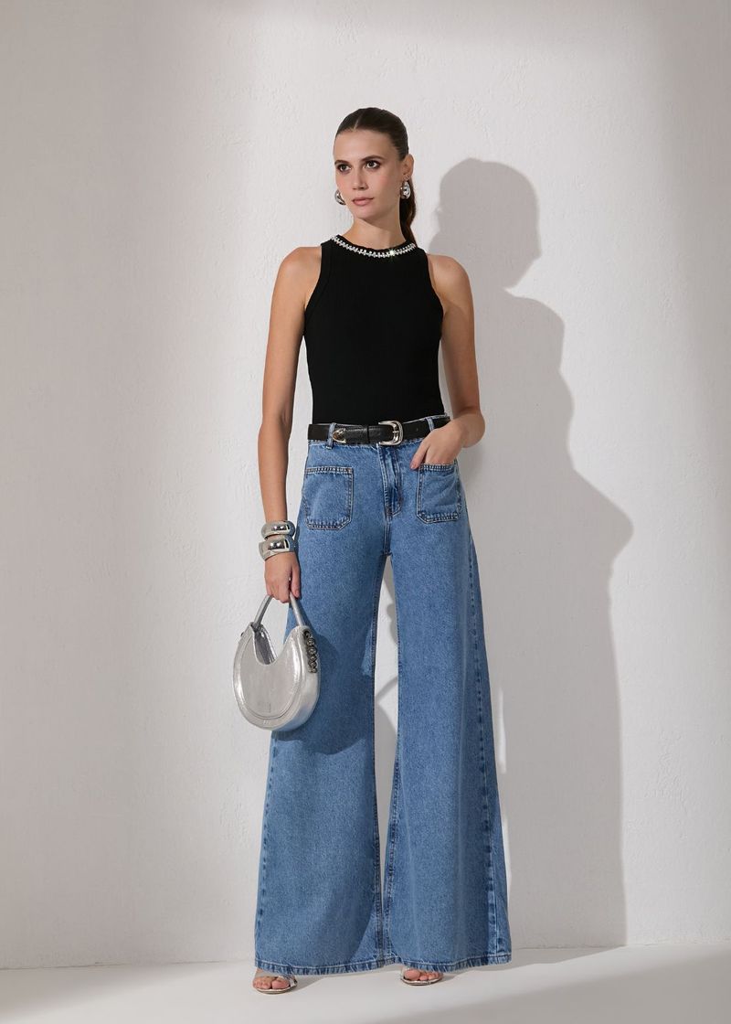 Calça Wide Leg Jeans Pocket - Jeans