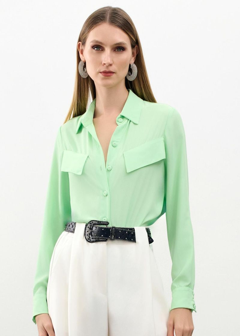 Camisa Crepe Lapela - Maca Verde