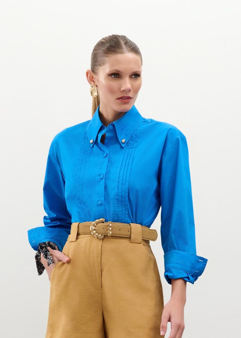 Camisa Cropped Em Tricoline Cotton Collection - Azul