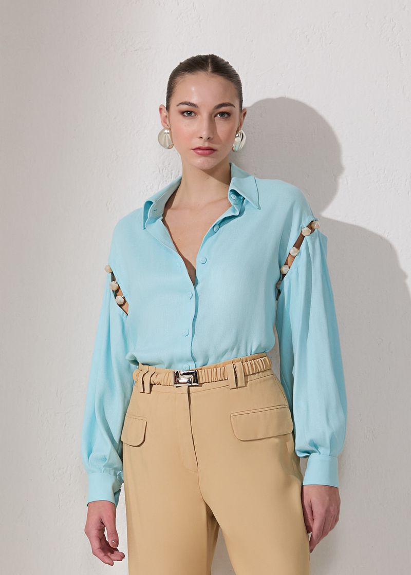SaleBlusasCamisa Manga Longa Candy Linen - Light Blue