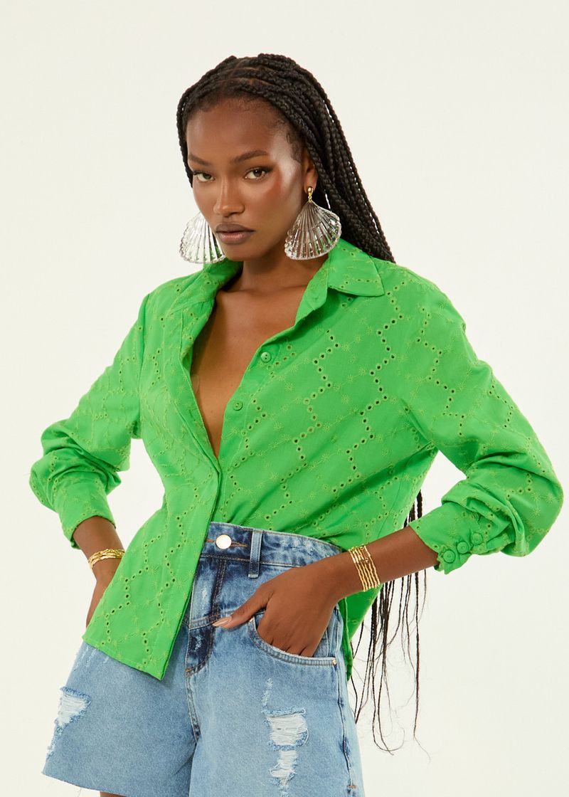 Camisa Manga Longa Detalhe Vazado - Energy Green