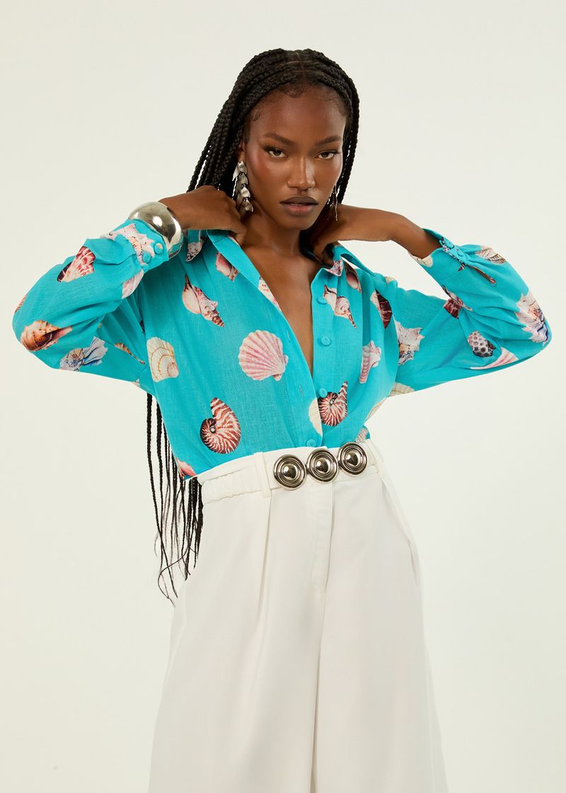 Camisa Manga Longa Estampa Shell - Pool Blue