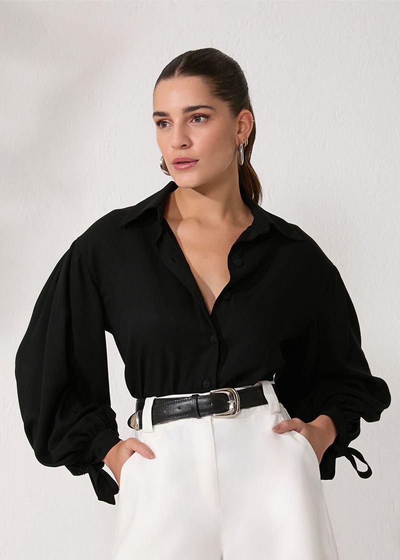SaleBlusasCamisa Manga Over Visco Texture - Preto