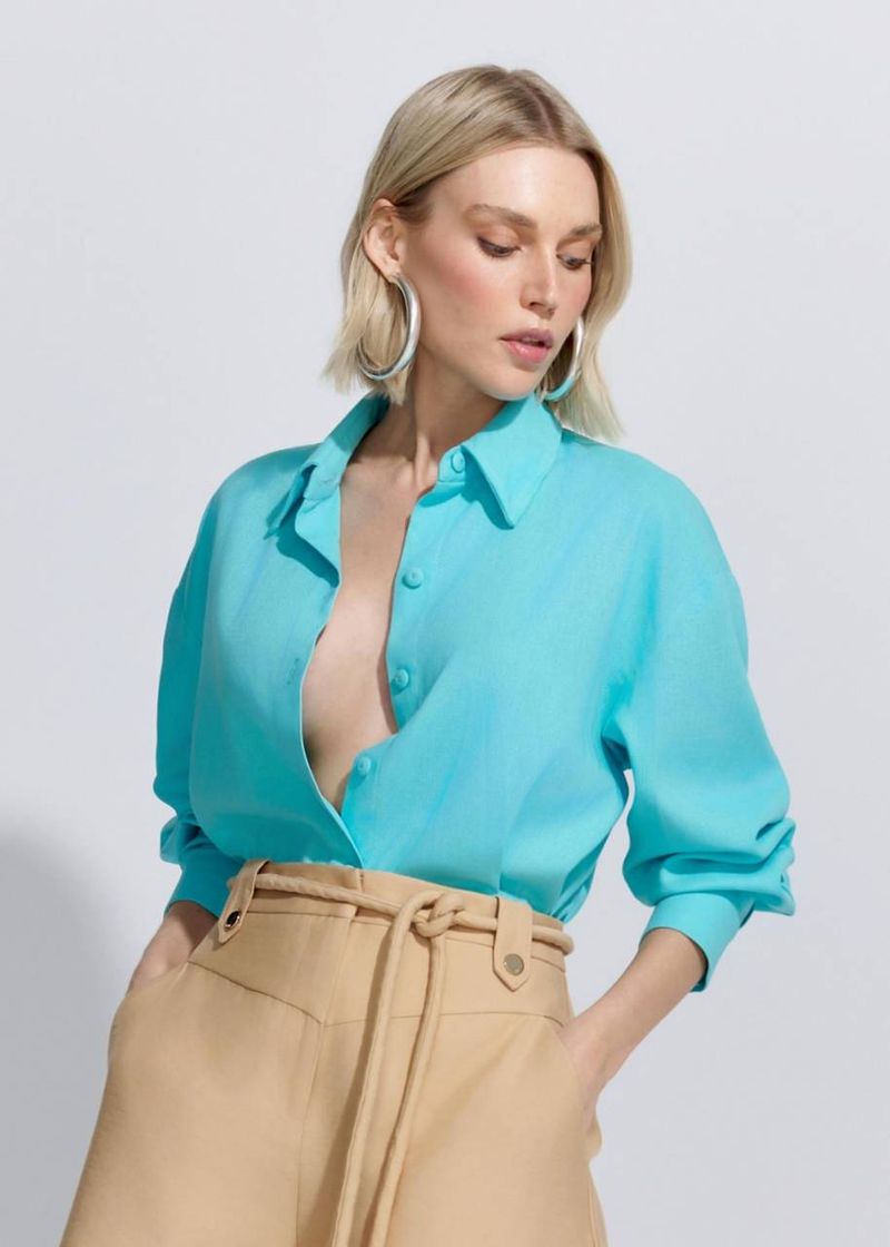 Com um azul profundo e elegante, esta camisa traz uma proposta atemporal com toque contemporâneo. A pence nas costas valoriza a silhueta, enquanto os botões forrados reforçam o acabamento sofisticado. Use com calça branca ou jeans reto para composições que equilibram modernidade e sobriedade. Ideal para jantares, reuniões ou produções do dia a dia com estilo. Finalize com mocassins de couro ou sandálias minimalistas.