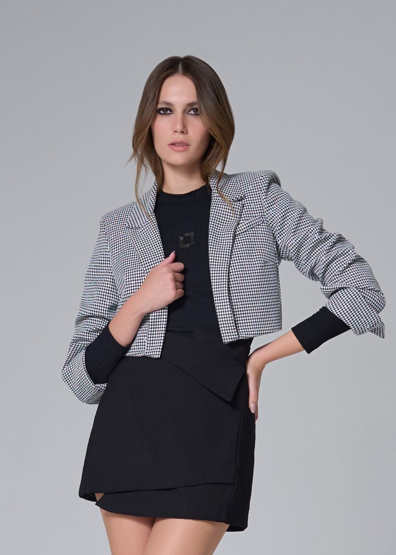 Casaco Cropped Pied De Poule Strass - Preto