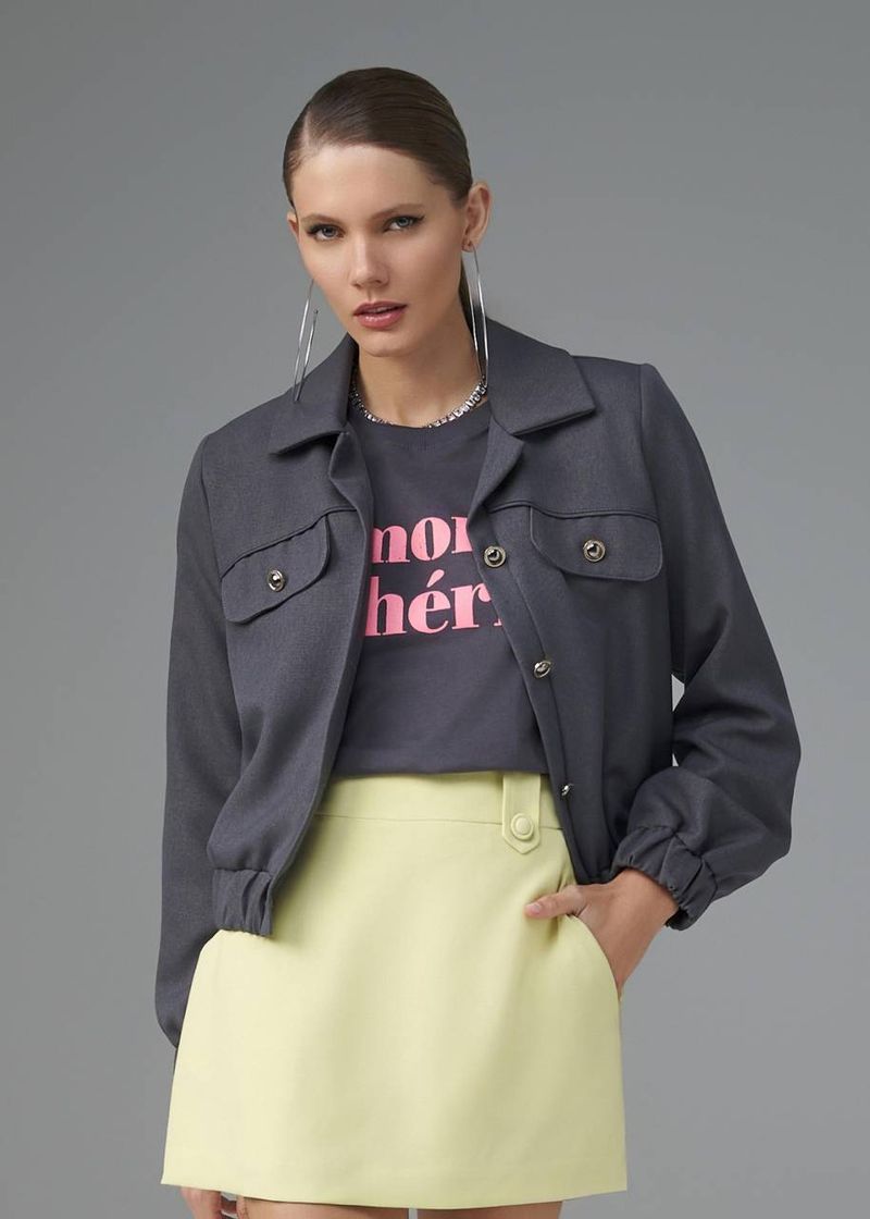 Estruturado e sofisticado, este casaco de alfaiataria sarjada combina acabamentos elegantes e um design clássico com um toque contemporâneo. O detalhe em vivo nas palas e tampas decorativas adiciona profundidade ao modelo, enquanto o elástico nos punhos e na barra proporciona um ajuste confortável e bem delineado. Os botões de metal personalizados finalizam a peça com um toque de exclusividade. Na cor chumbo, a peça ganha um ar moderno e sofisticado, ideal para composições formais e imponentes.