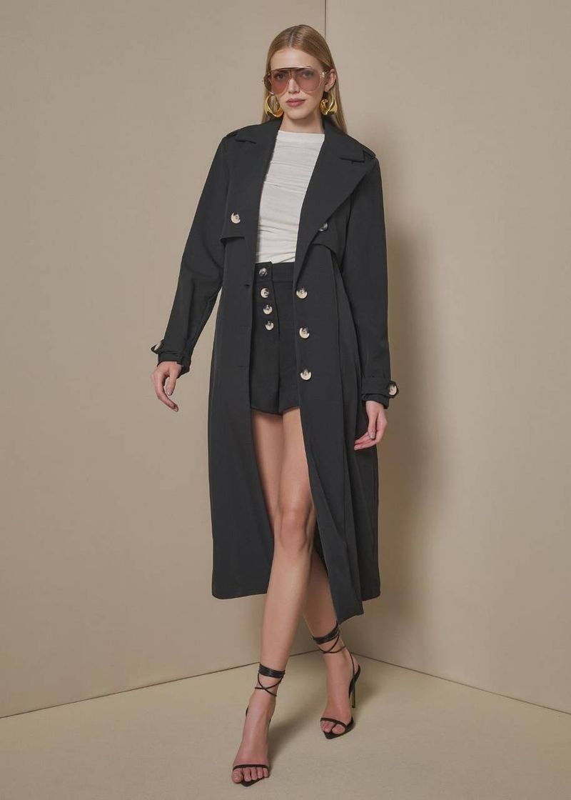 Casaco Trench Coat Feminino Em Alfaiataria - Preto