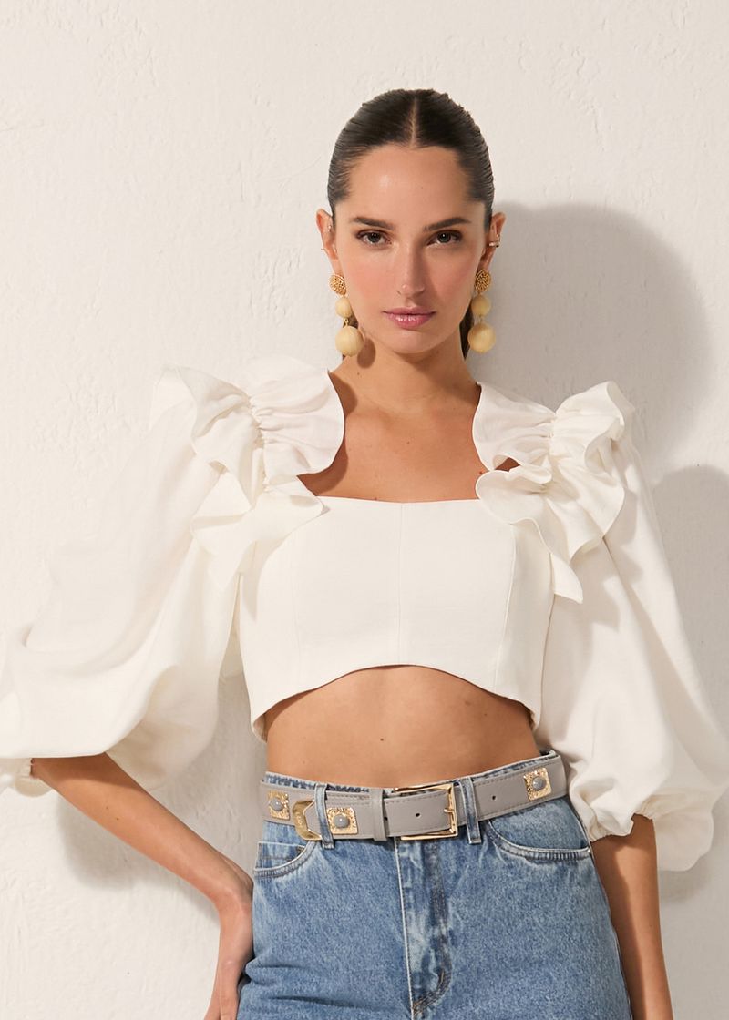 SaleCouroAcessóriosCinto Couro Detalhe Metal - Prata