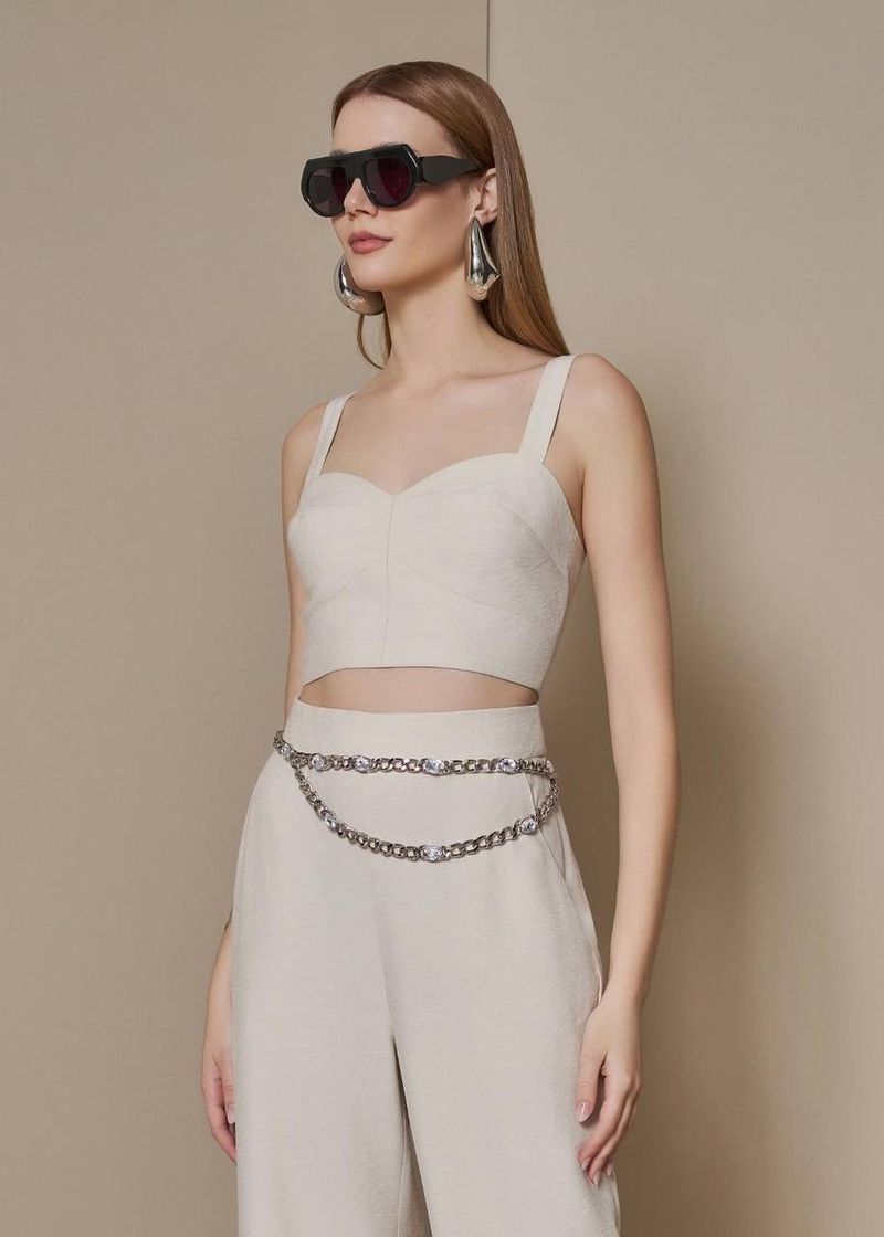 No banho prata, o cinto ganha uma elegância moderna e refinada. Os cristais realçam ainda mais o efeito metálico, trazendo luminosidade sem exagero. É o acessório ideal para elevar looks minimalistas, dar charme a composições monocromáticas e criar pontos de luz estratégicos no styling.