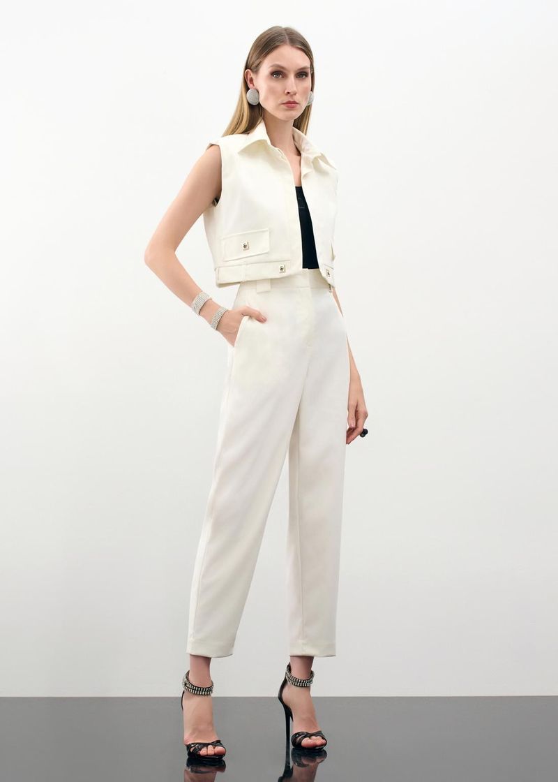 Cojunto Colete E Calça Cenoura Suede Twill - Off White