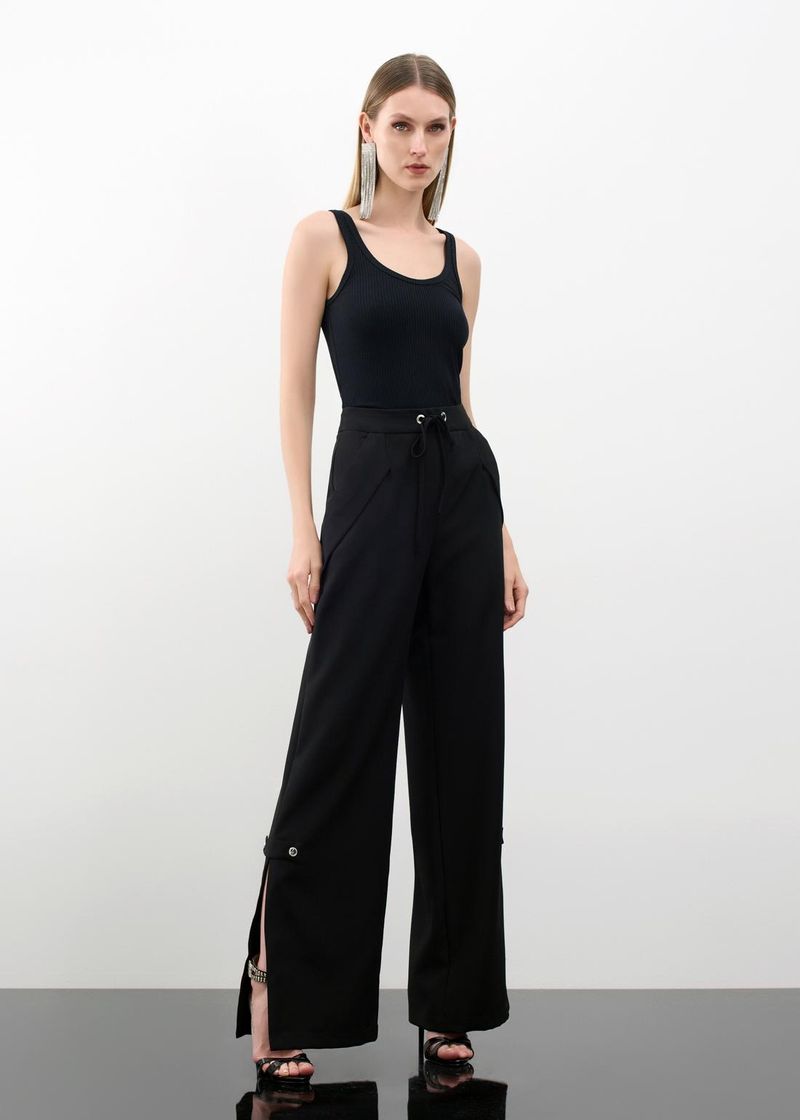 SaleConjuntosConjunto Blusa Canelada E Calça Fenda Fresh - Preto