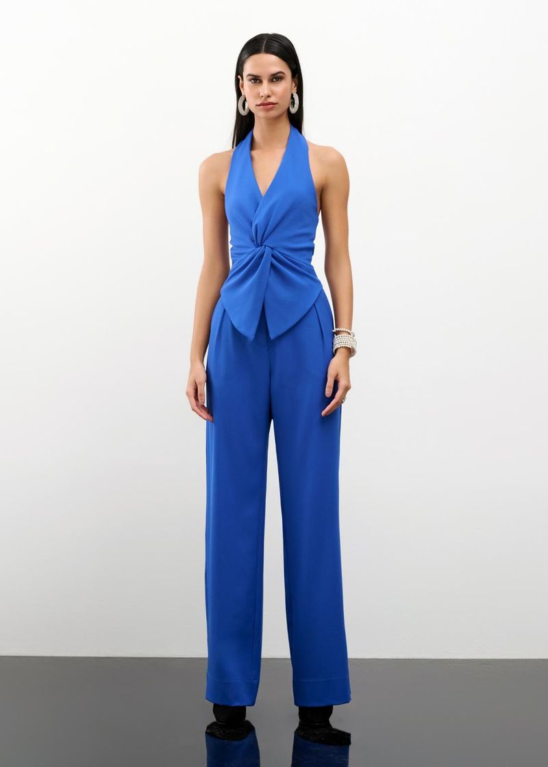 Conjunto Blusa E Calça Em Crepe Frente Única - Real Blue
