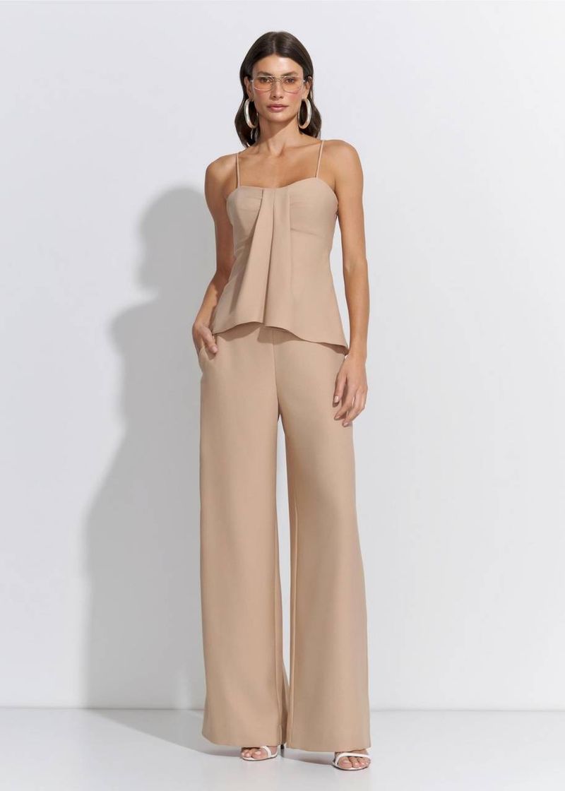 Conjunto Blusa Fenda Calça Wide Crepe Munique - Areia