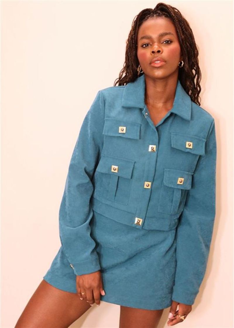 Conjunto Casaco E Short Saia Suede Twill - Esmeralda