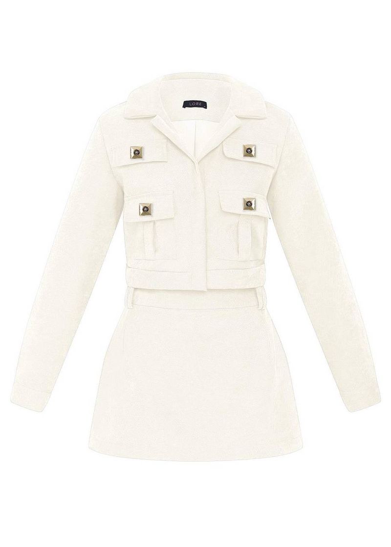 Conjunto Casaco E Short Saia Suede Twill - Off White